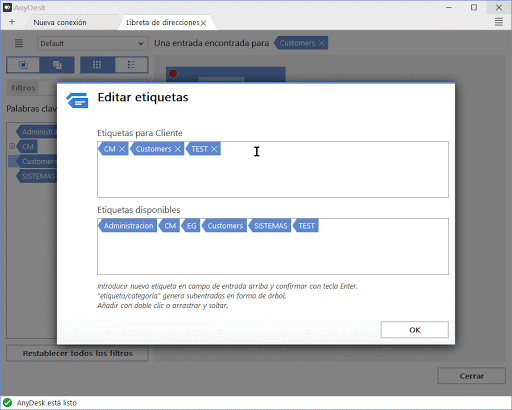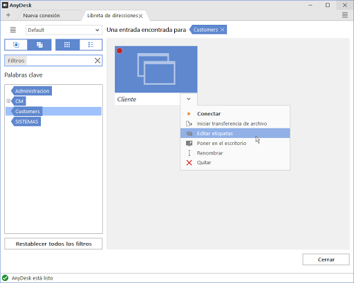En las versiones pagas de AnyDesk, puedes organizar mejor tus dispositivos utilizando etiquetas.